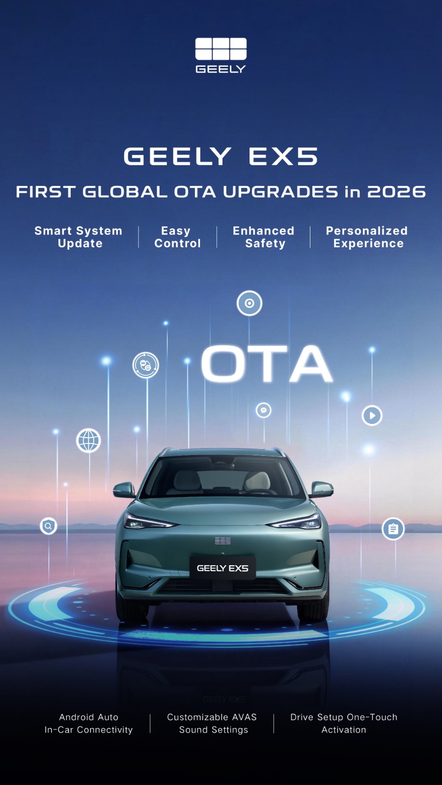 El Geely EX5 recibirá su primera actualización global over-the-air (OTA) en 2026. Esta actualización se enfoca en mejorar la experiencia diaria del usuario, abarcando conectividad inteligente, facilidad de uso, respuesta del sistema y optimizaciones de seguridad.
